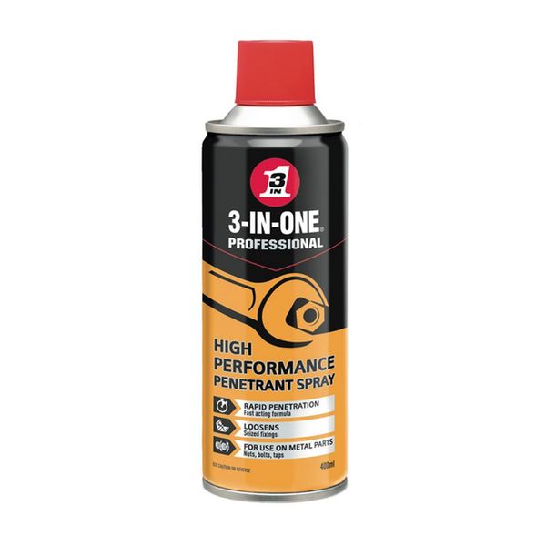 3-In-One 400ml Penetrant Spray - 44601 is a fast-acting formula designed to quickly loosen rusted or stuck parts. This professional-grade penetrant spray also helps remove grease and grime from various surfaces, while providing protection against rust and corrosion.