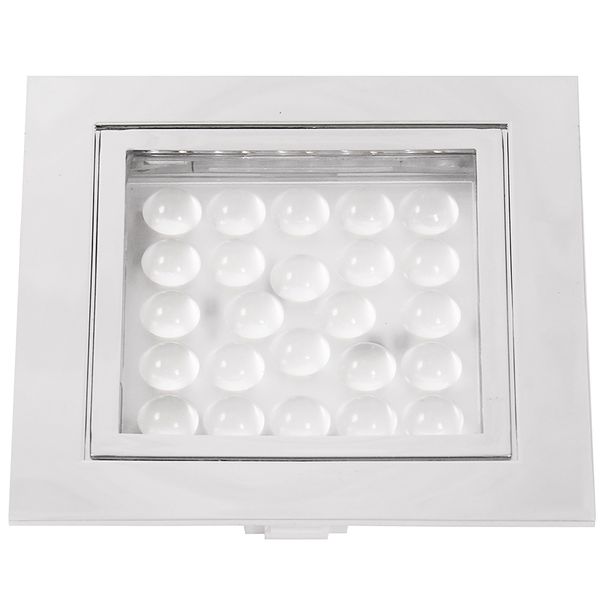 LED Square downlighter designed for recessed mounting. Made of plastic, with optic lens with 24 x warm white SMD LEDs, 1.7W Colour Temperature: 2750- 3250K Easy installation with slim design, only 9.5mm of installation depth required. Dimensions: Square Hole Recess requirement 57mm x 57mm, Overall 65mm x 65mm. Total depth: 10.7mm. IP44 Rated.