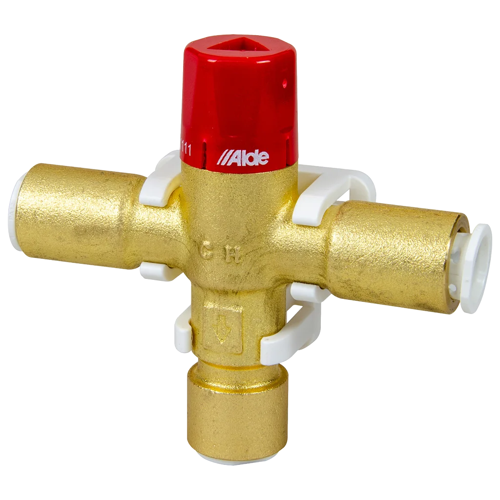 The Alde Thermostatic Mixing Valve 3 is a genuine Alde accessory designed to improve hot water safety and comfort in caravans and motorhomes by mixing hot and cold water to a controlled, comfortable temperature before it reaches your outlet (e.g., shower or sink).
