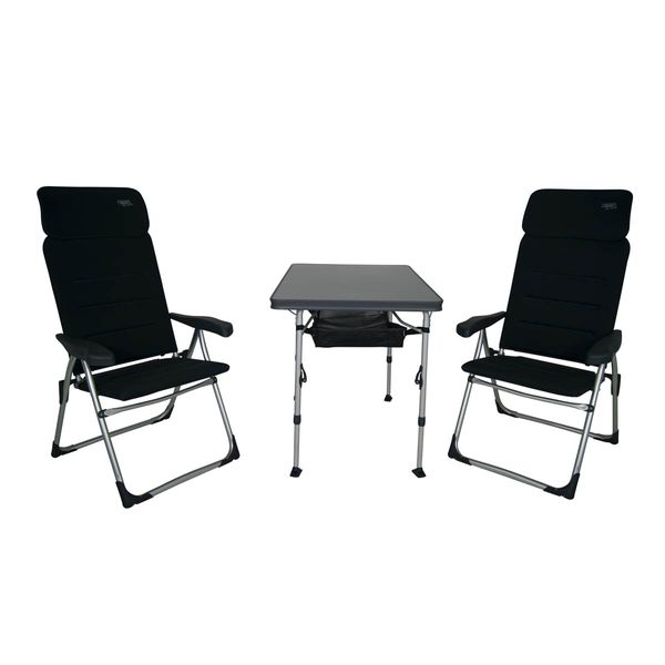 Elevate your outdoor comfort with the Crespo Furniture Set AA-213 Air Elite Grey (Part No. 1104968). This all-in-one set includes two extra-compact AA-213 Air-Elite chairs, a matching table, storage net, and carry bag—designed specifically for style, portability, and durability. With a folded diameter of just 18 cm, it packs down ultra-small for easy transport, yet still delivers premium comfort with wide seats, adjustable 7-position backrests, and heavy-duty materials. Perfect for caravanning, camping, festivals or lakeside retreats. Fits snugly in your vehicle without overwhelming your space.