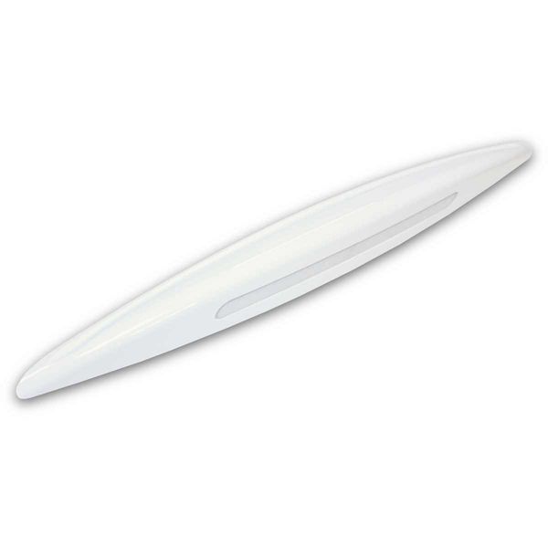 This 12V awning light features a white casing and a milky glass lens, providing diffused natural white (4000K) illumination for enhanced visual comfort in porch areas. The body incorporates a built-in water channel, allowing it to function as a rain gutter when installed above a vehicle’s door. Its 650mm length makes it suitable for most door sizes.