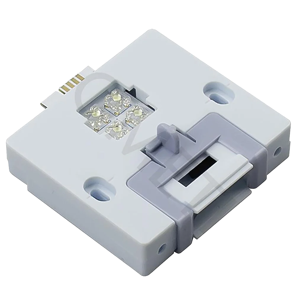 This part is intended for Dometic fridges with left-hand hinged doors that use an integrated door lock and LED lighting switch. It replaces the existing lock/lamp assembly to restore secure closure and ensure the internal light activates correctly when the door is opened.