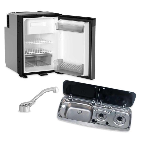 Designed specifically for campervan conversions, this comprehensive bundle includes a Dometic NRX50 compressor fridge, a Dometic 9222 combination hob and sink unit, and a high-quality single-lever cold water tap, offering an all-in-one kitchen solution for your campervan setup.