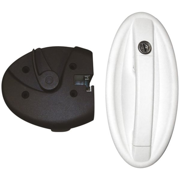 Oval Lock White - 1098KIT0128N: A widely used white lock assembly for motorhomes. Includes the FAP new system barrel and two keys for convenience.