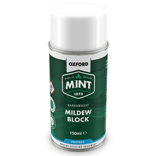 Oxford Mint Narrowboat Mildew Block 150ml - OC151NB is a highly effective solution designed to prevent mildew and mold growth inside the cabin while the boat is closed and not in use. Simply press the self-locking button, place the can in a central position, and it releases a fine mist that covers all surfaces, including fabrics, with an anti-fungal herbicide. This treatment ensures that the cabin stays free of mildew and mold spores, leaving a pleasant, fresh citrus scent upon your return.