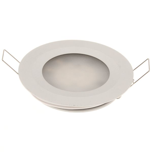 Slim aluminium downlight, switched by touching the metal frame. 50% and 6% dimming with touch, smooth dimming with hold. Built in warm white LEDs.