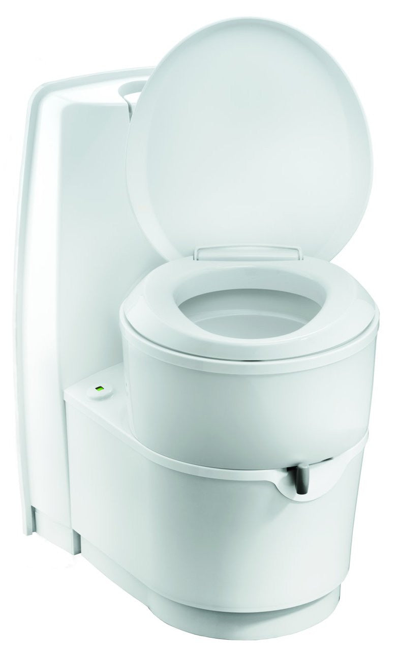 The Thetford C224-CW Basic Toilet, designed with a removable waste-holding tank and constructed from high-quality, durable plastic.