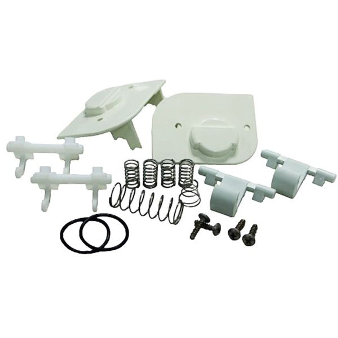 This Thetford spares kit is designed to help you repair the access door for removing the cassette in Thetford toilets, commonly used in campervans, caravans, motorhomes, and boats. The kit contains essential replacement parts for hinges, springs, and other components.